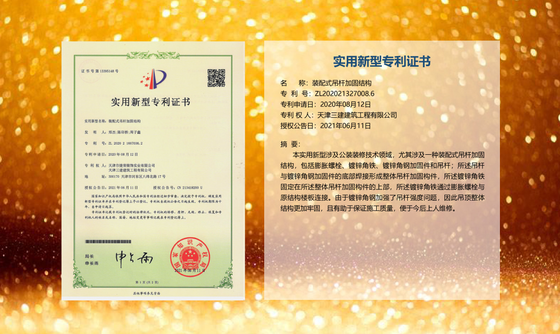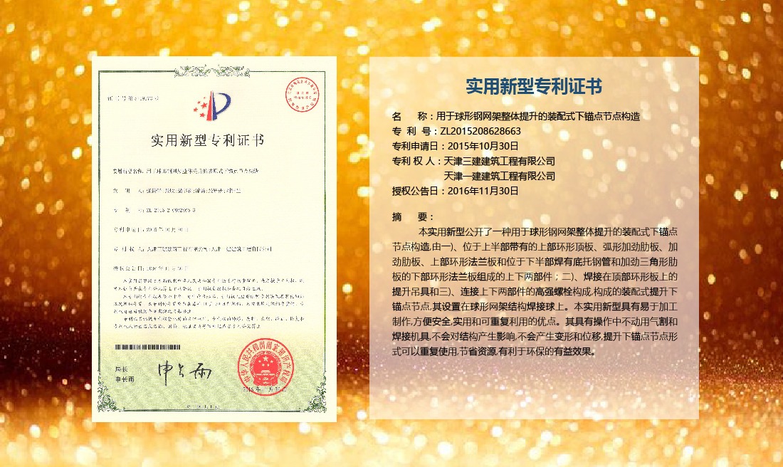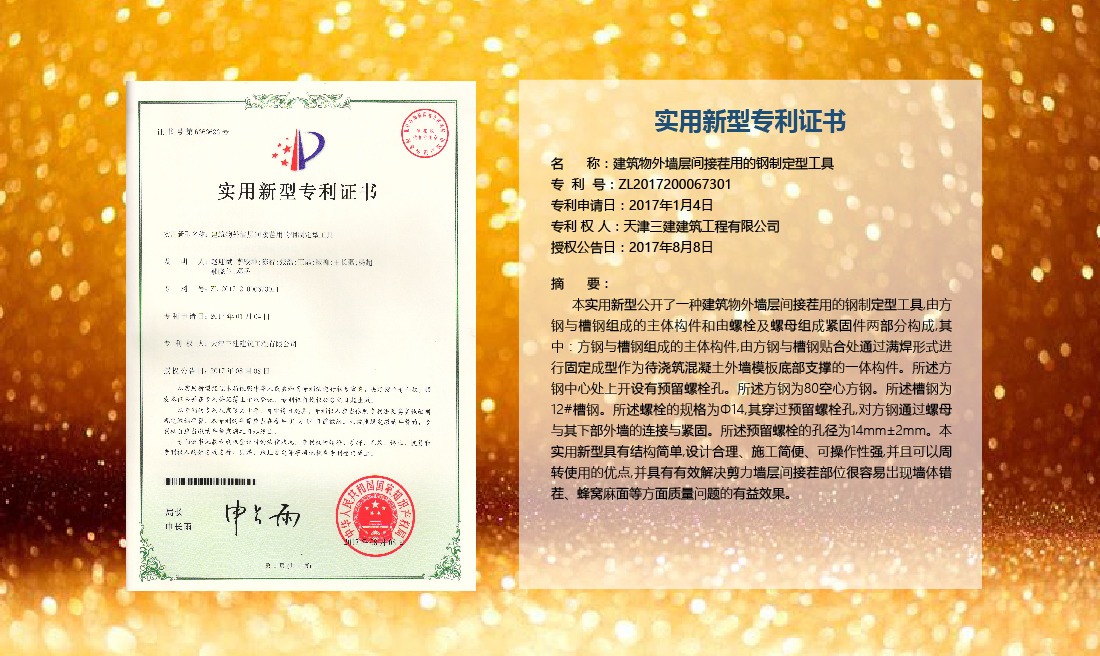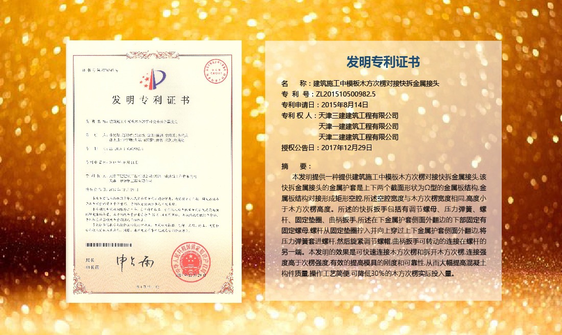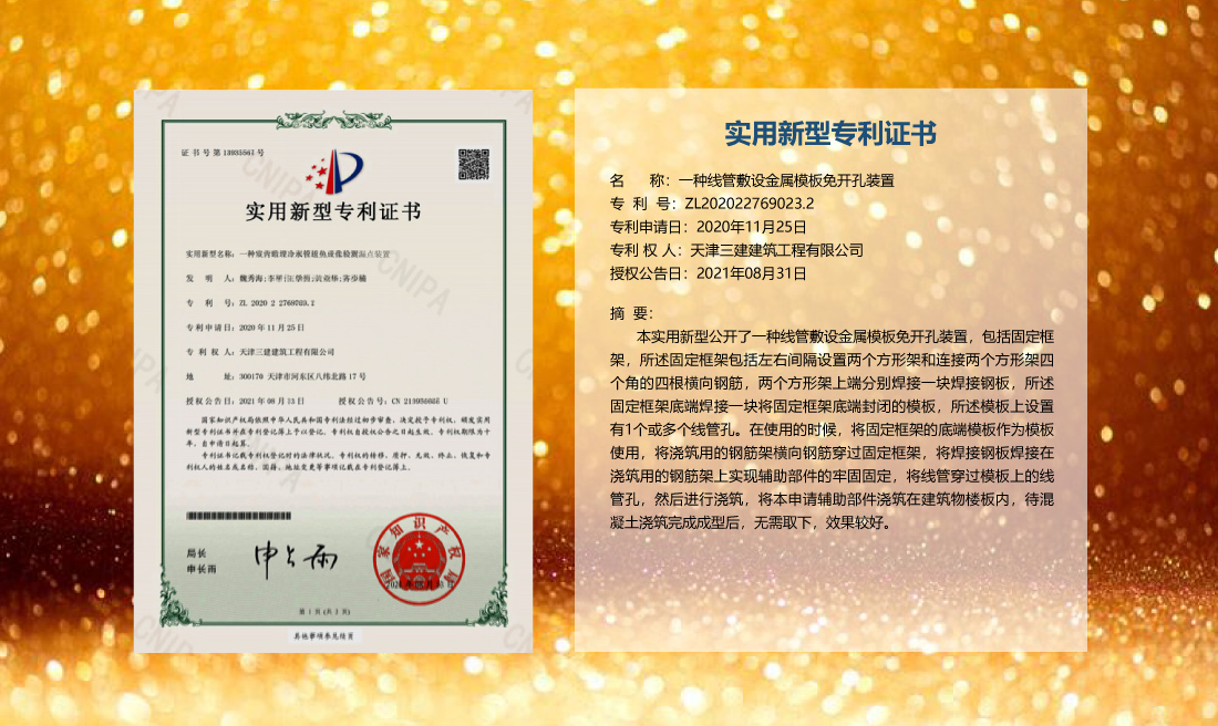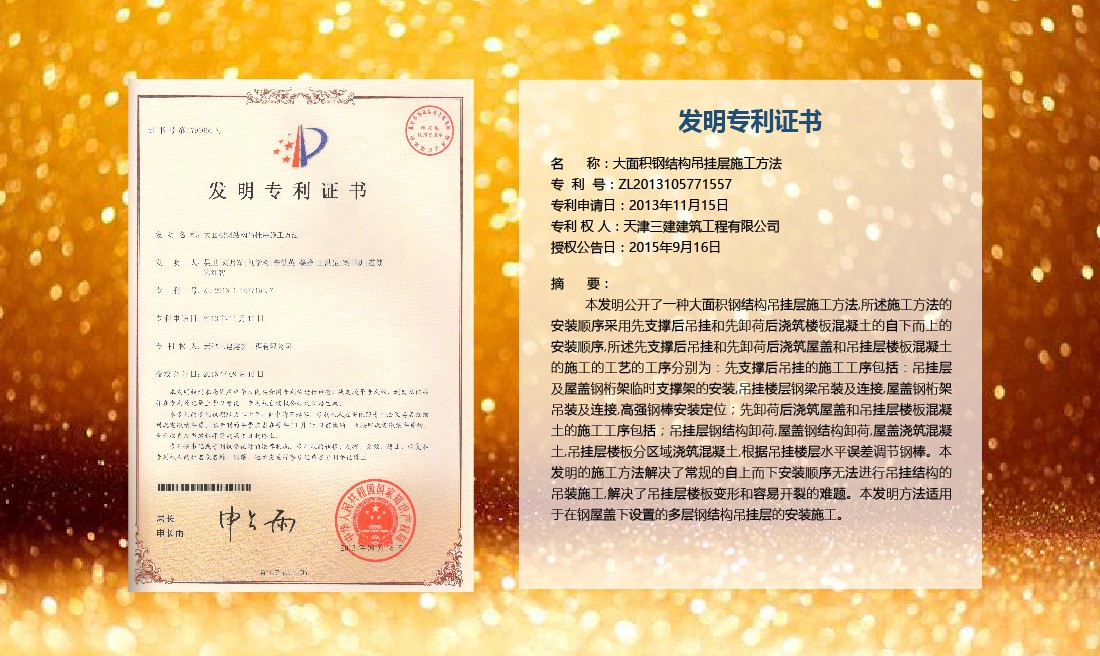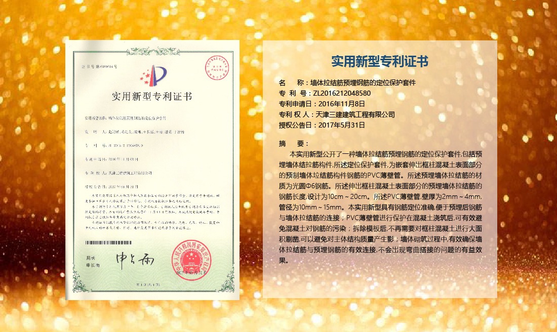 三建公司在總結施工經驗的基礎上,不斷發明創新,共獲得國家知識產權局授權專利71項,其中,國家發明專利12項,國家實用新型專利59項。囊括建筑、市政、巖土、道橋等多領域,凝聚了公司廣大工作人員的寶貴智慧和工程建筑者們的辛勤汗水。