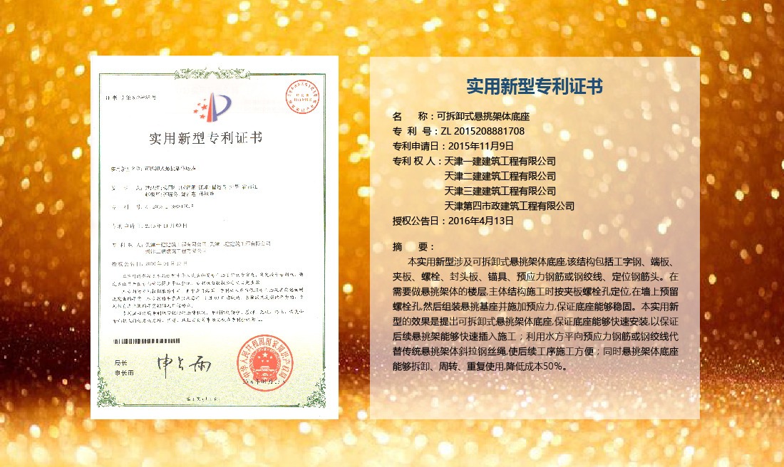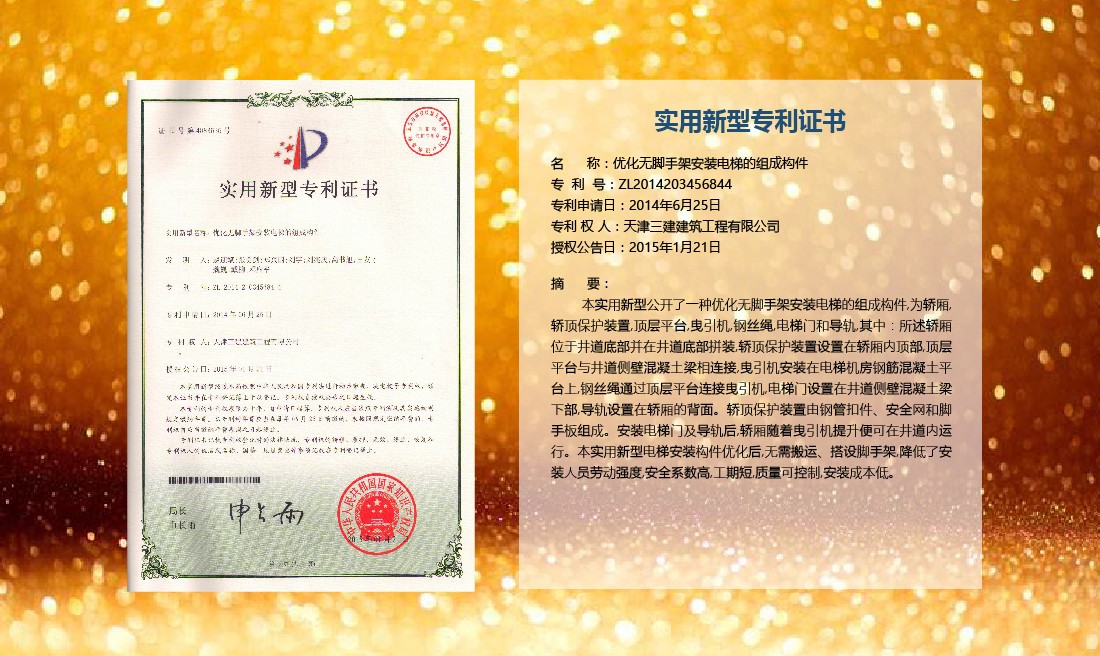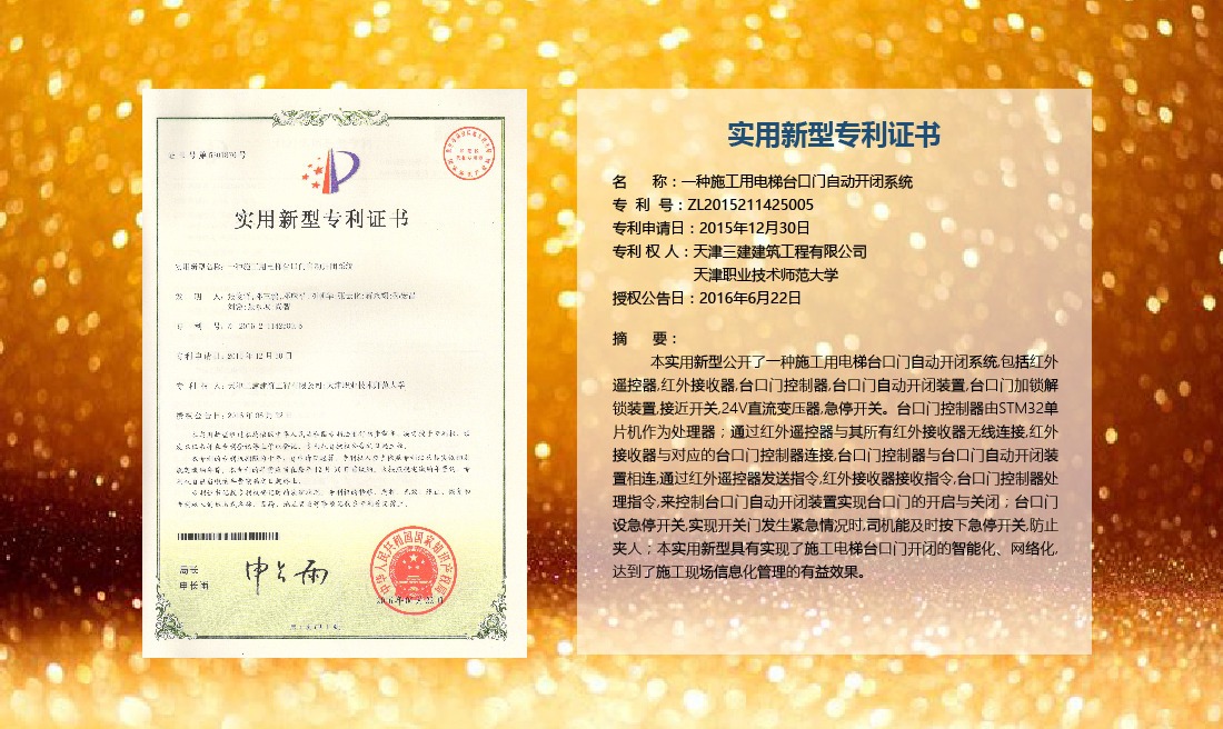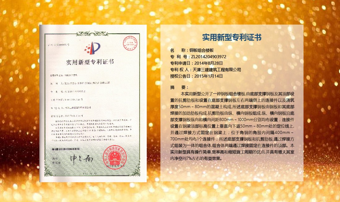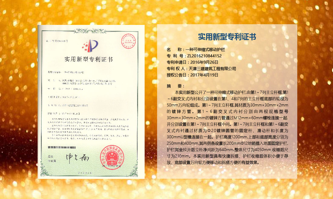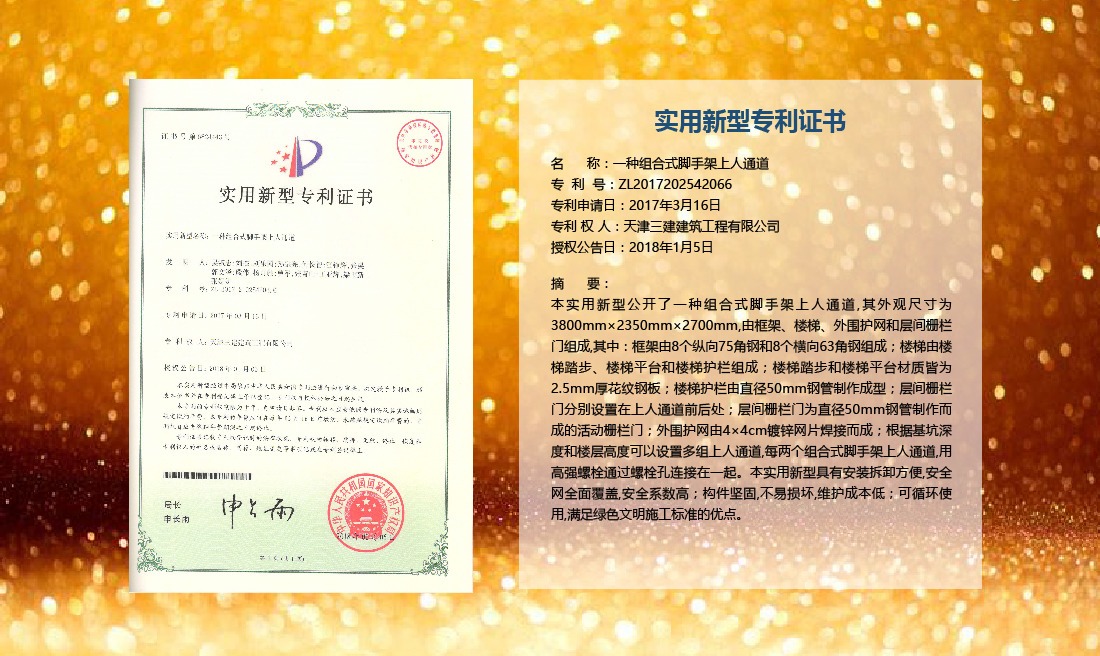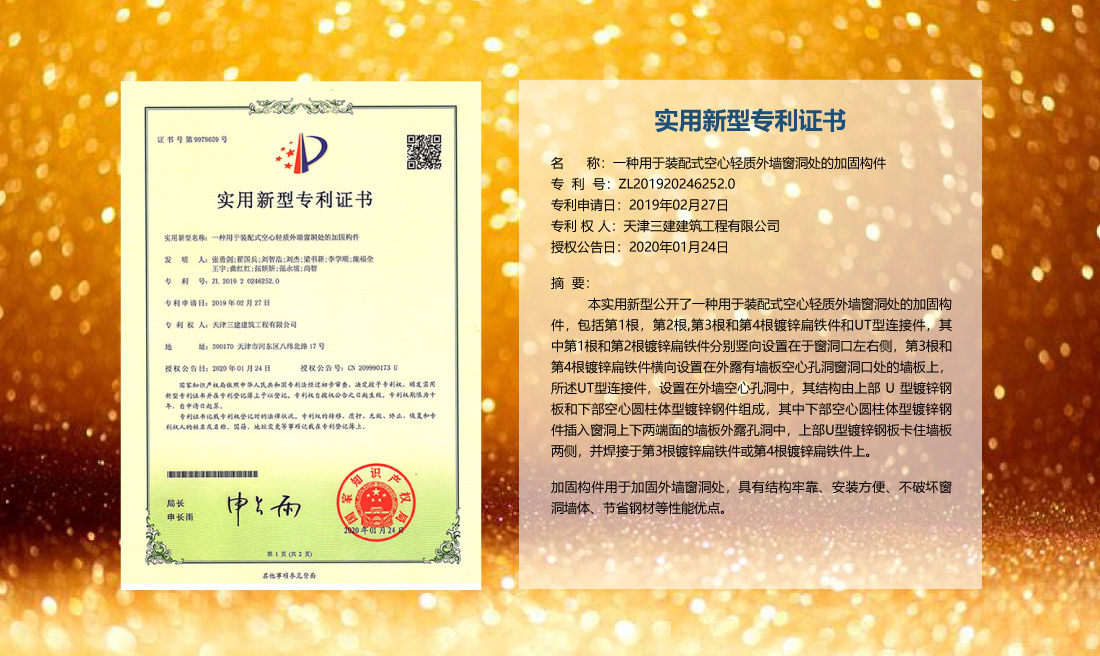 三建公司在總結施工經驗的基礎上,不斷發明創新,共獲得國家知識產權局授權專利71項,其中,國家發明專利12項,國家實用新型專利59項。囊括建筑、市政、巖土、道橋等多領域,凝聚了公司廣大工作人員的寶貴智慧和工程建筑者們的辛勤汗水。