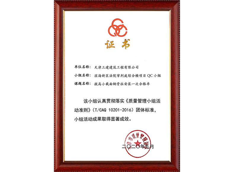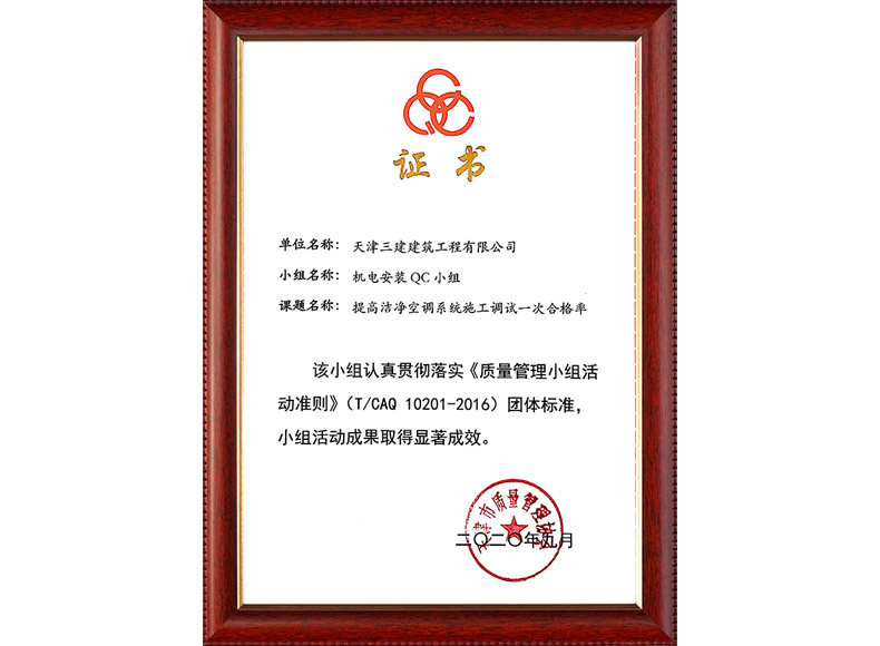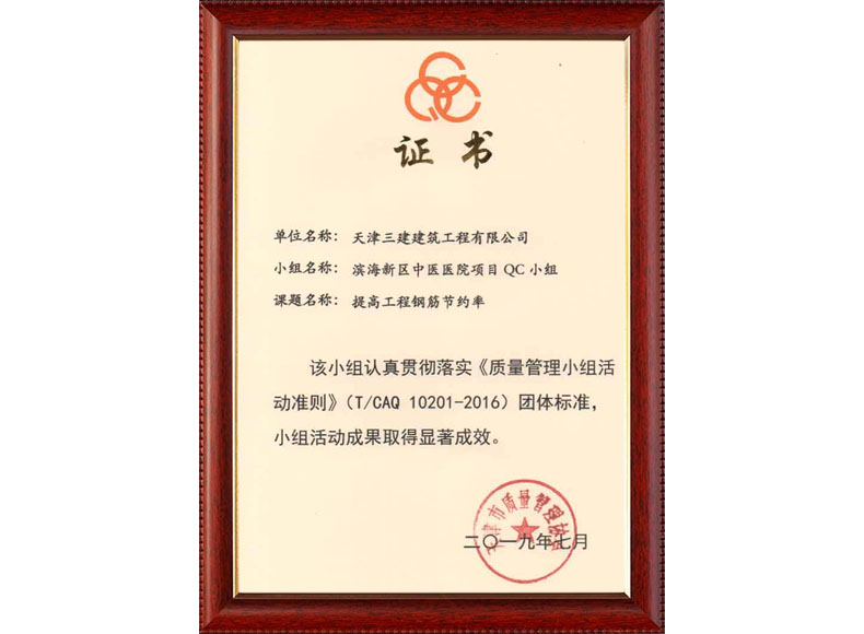 2020中建協QC成果I類成果(濱海新區中醫醫院項目)