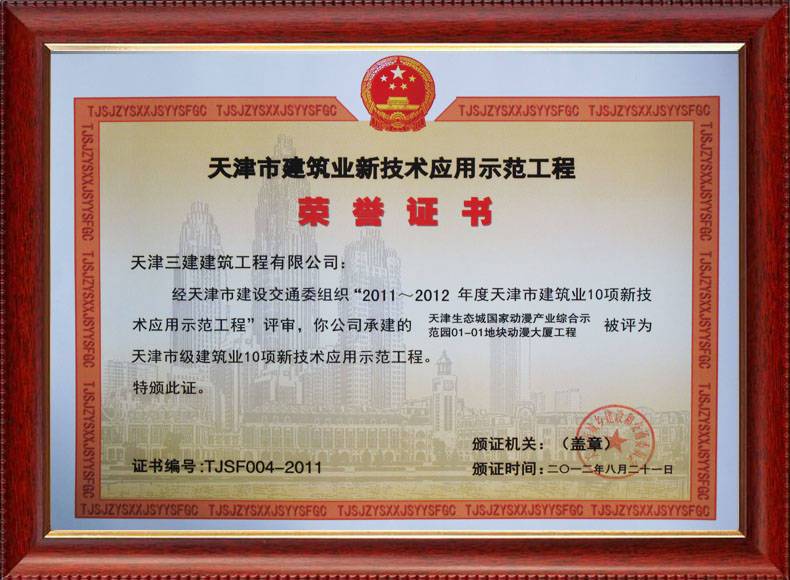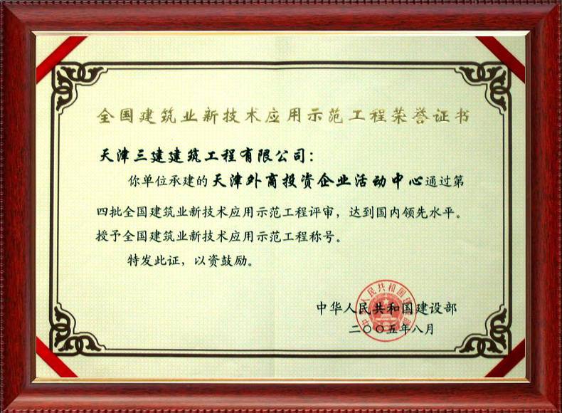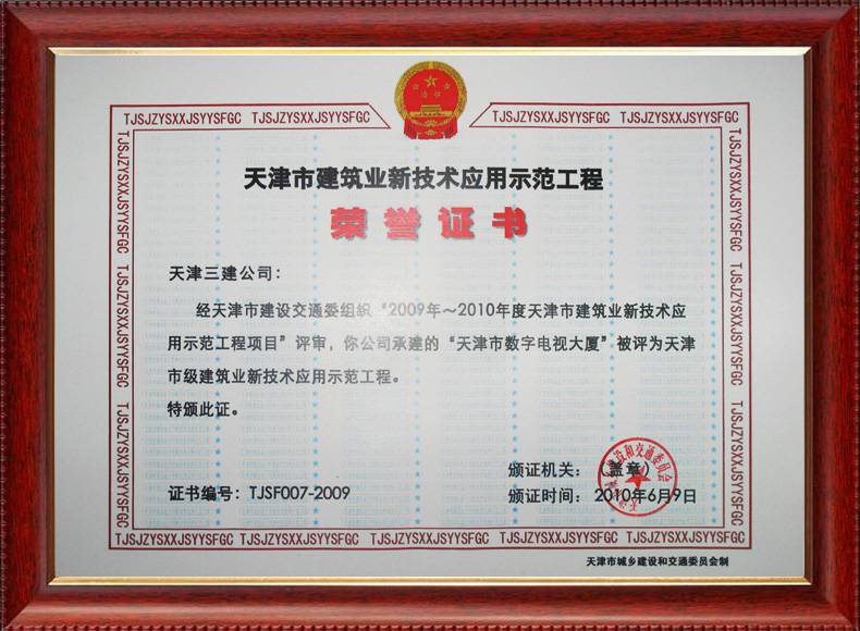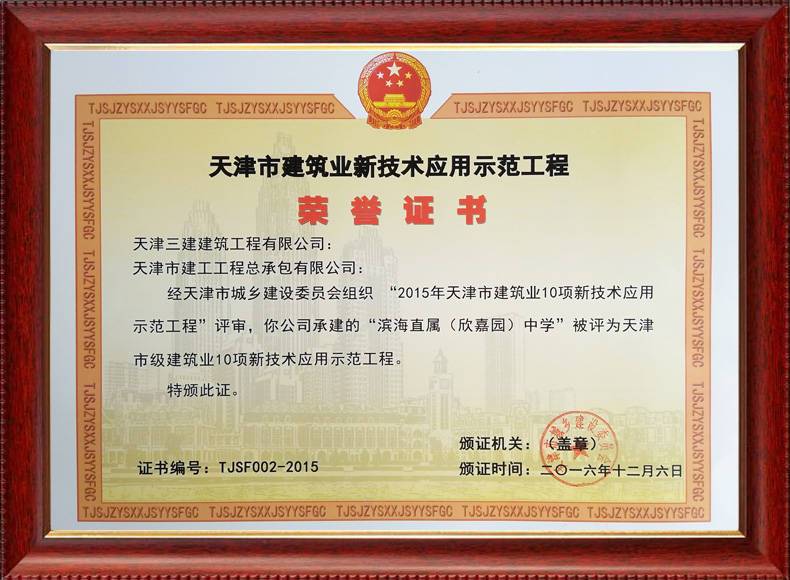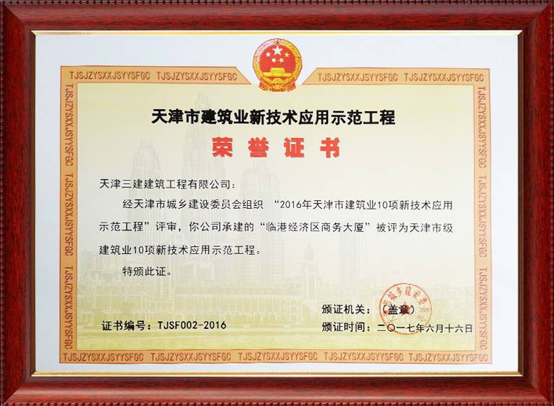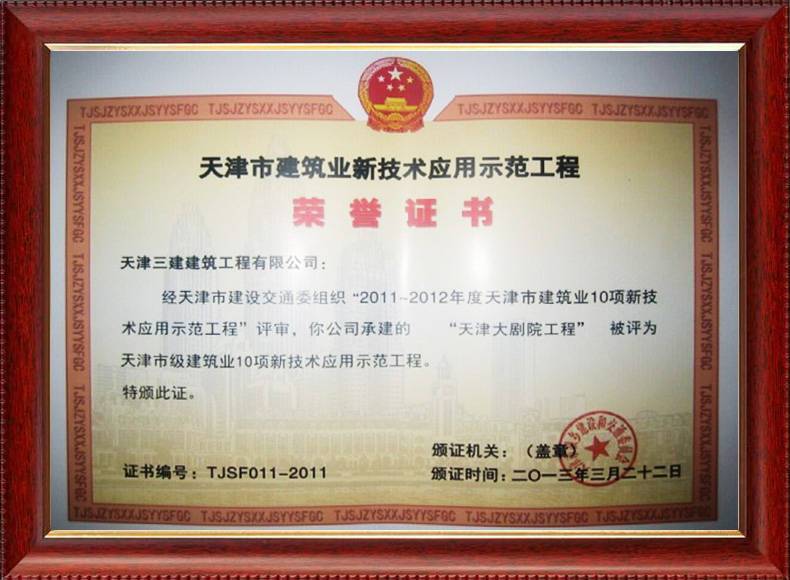 三建公司推廣應用住建部十項新技術,創建新技術應用示范工程17項,其中國家級4項,市級10項;創建綠色施工示范工程3項,住建部綠色施工科技示范工程1項,對指導工程建設、提高工程質量安全和施工管理水平發揮了重要作用。