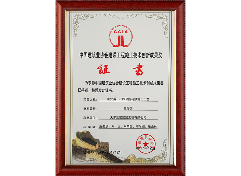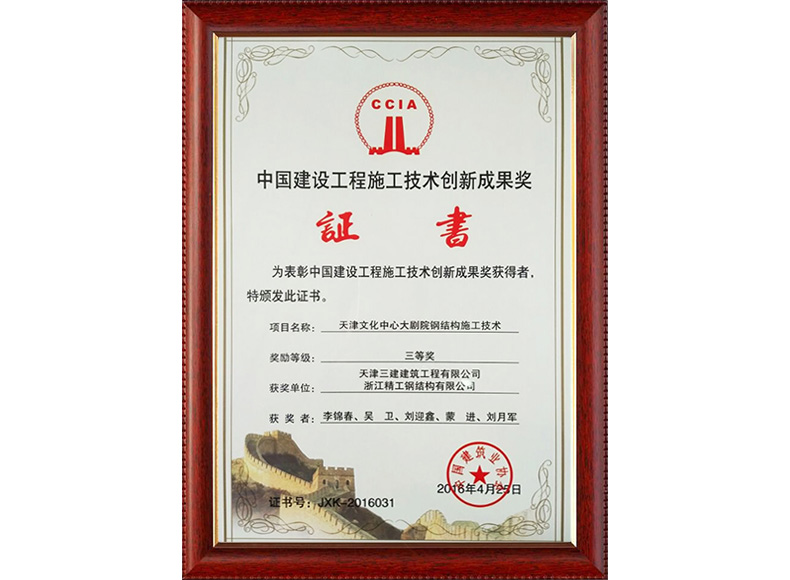 2016中國建筑業(yè)協(xié)會三等獎證書