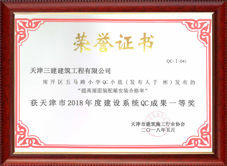 2018南開五馬路QC成果一等獎